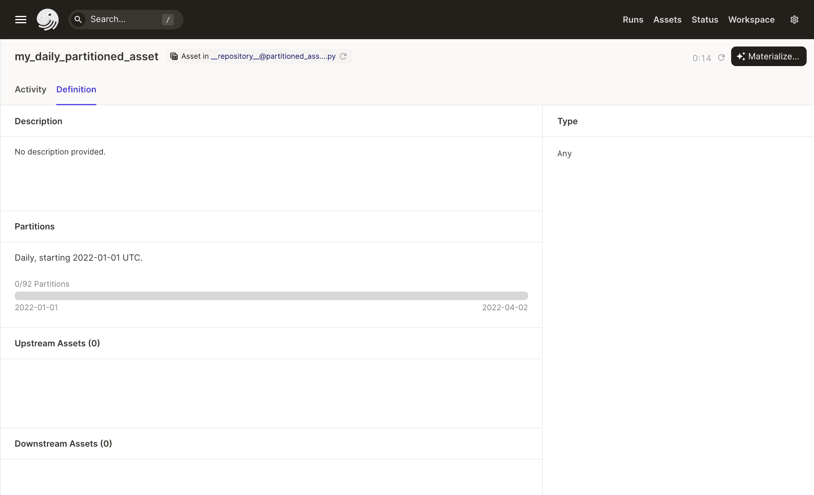 This page is specific to asset definitions. Looking for ops? Refer to the Partitioned ops documentation.
